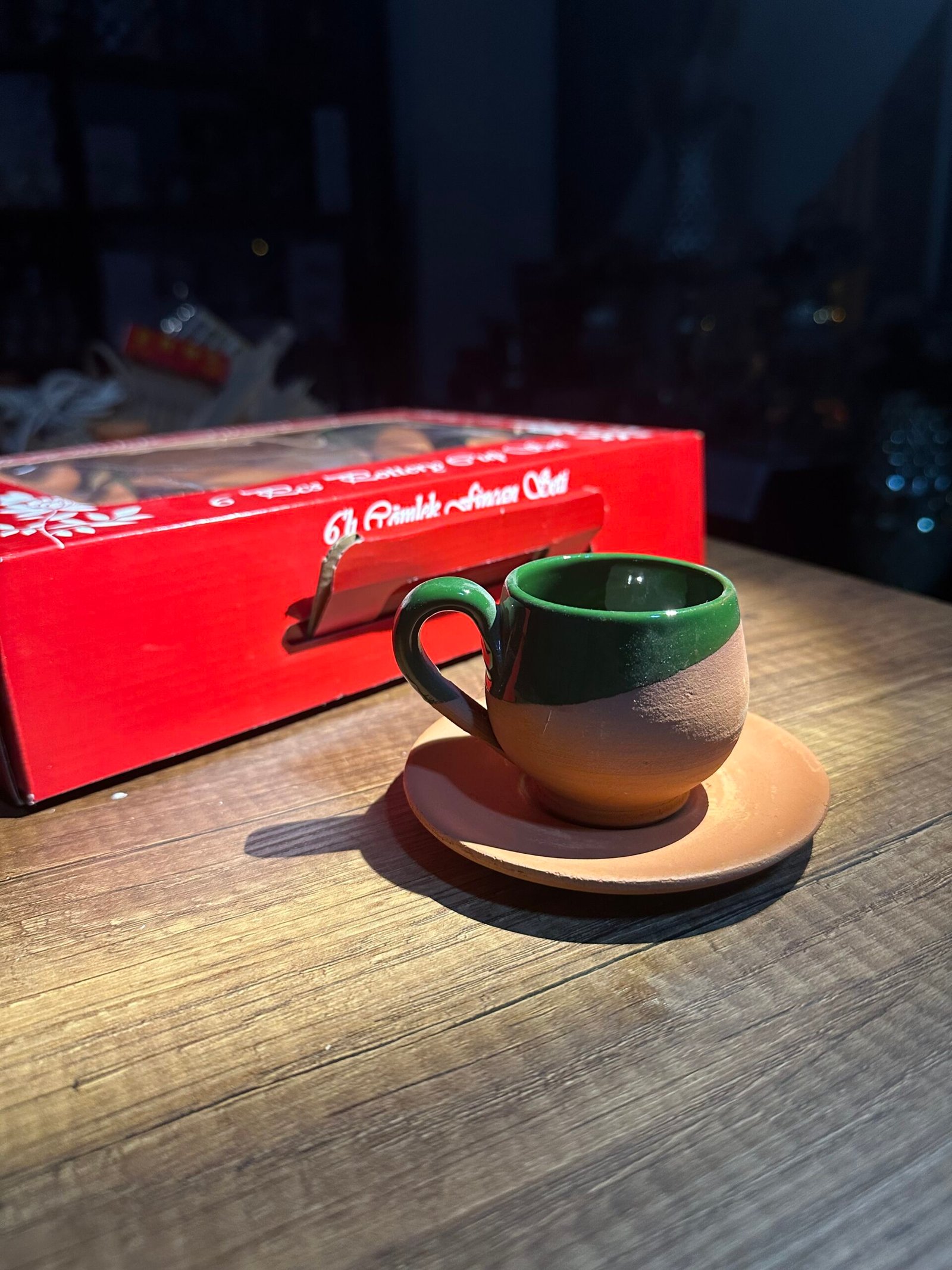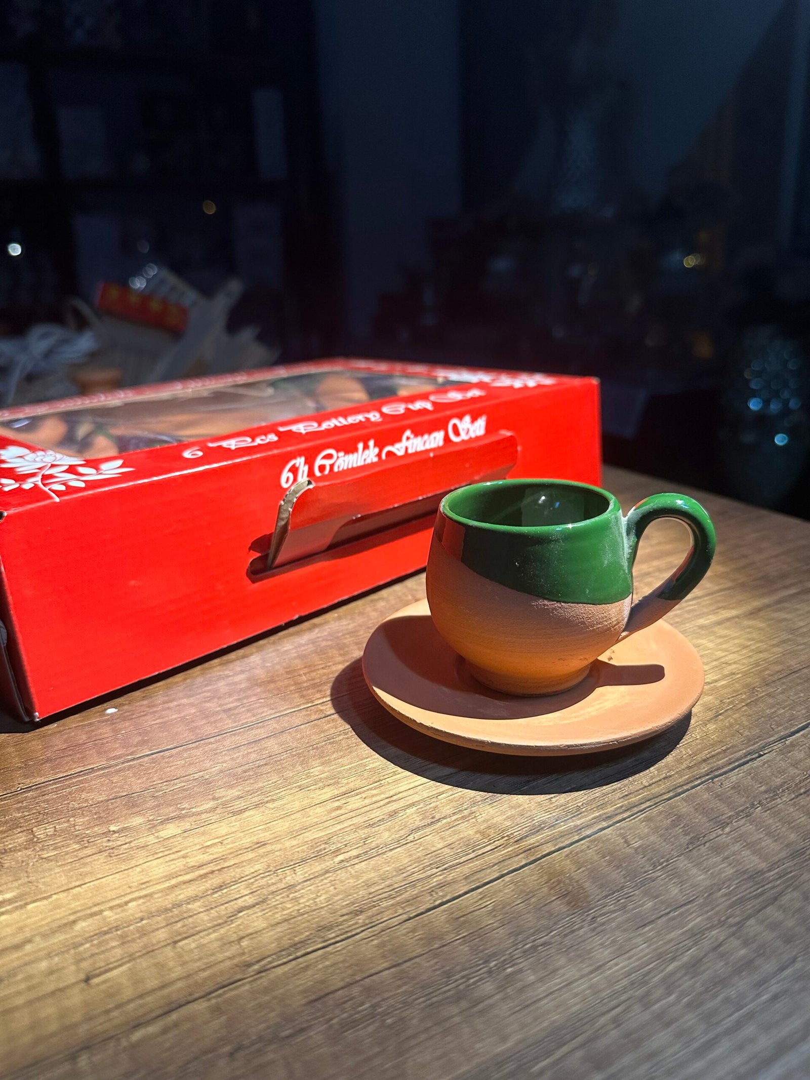 6’lı içi sırlı çömlek fincan takımı yeşil