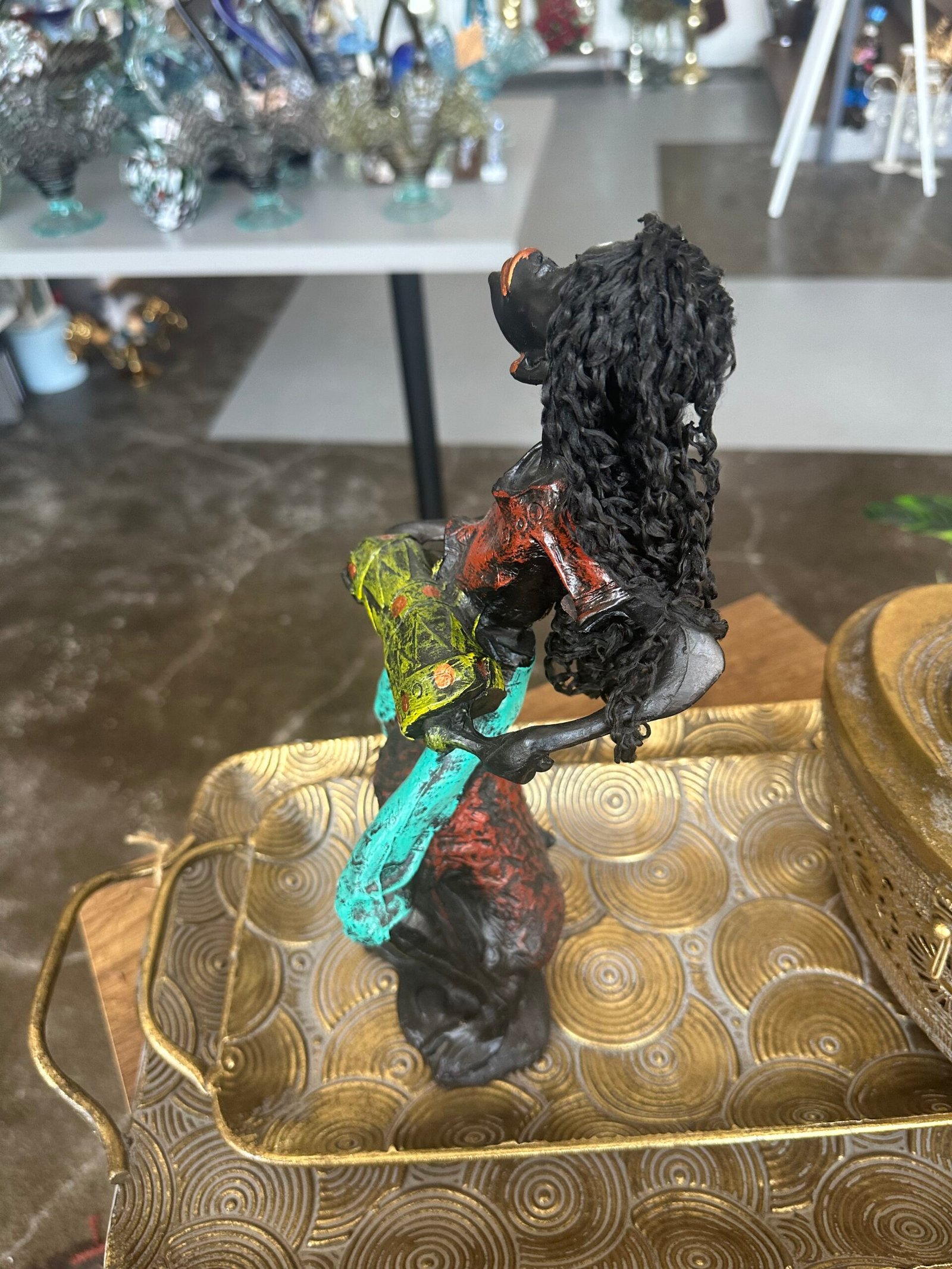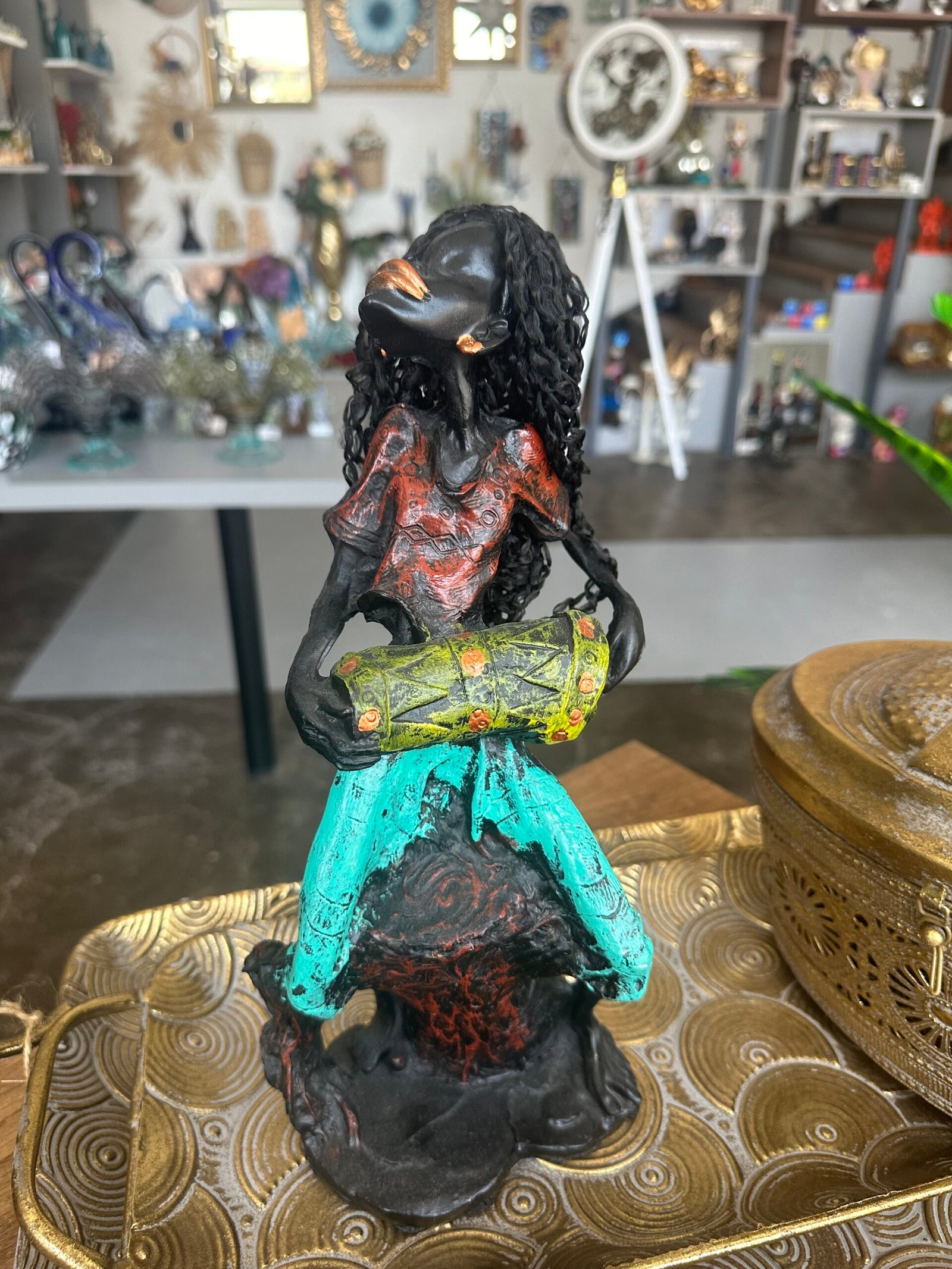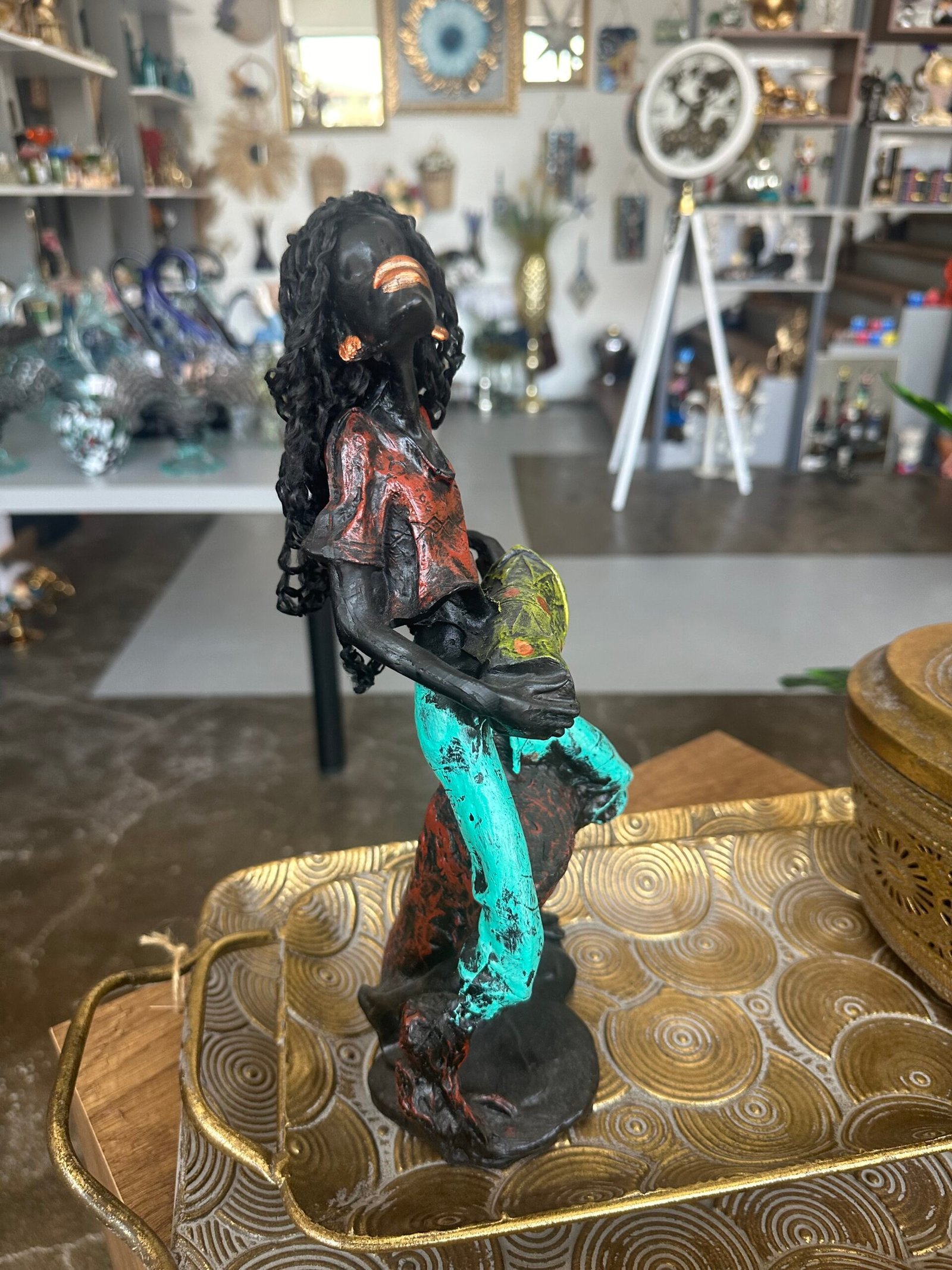 Bu polyester Afrikalı zenci müzisyen heykeli, sanat ve kültürün güçlü bir ifadesidir. Her detayı özenle işlenmiş olan bu obje, müziğin ve sanatın büyüleyici dünyasını yansıtan özel bir süs ürünüdür. Hem estetik hem de duygusal bir değer taşıyan bu heykel, evinizin veya ofisinizin atmosferini derinleştirecek.