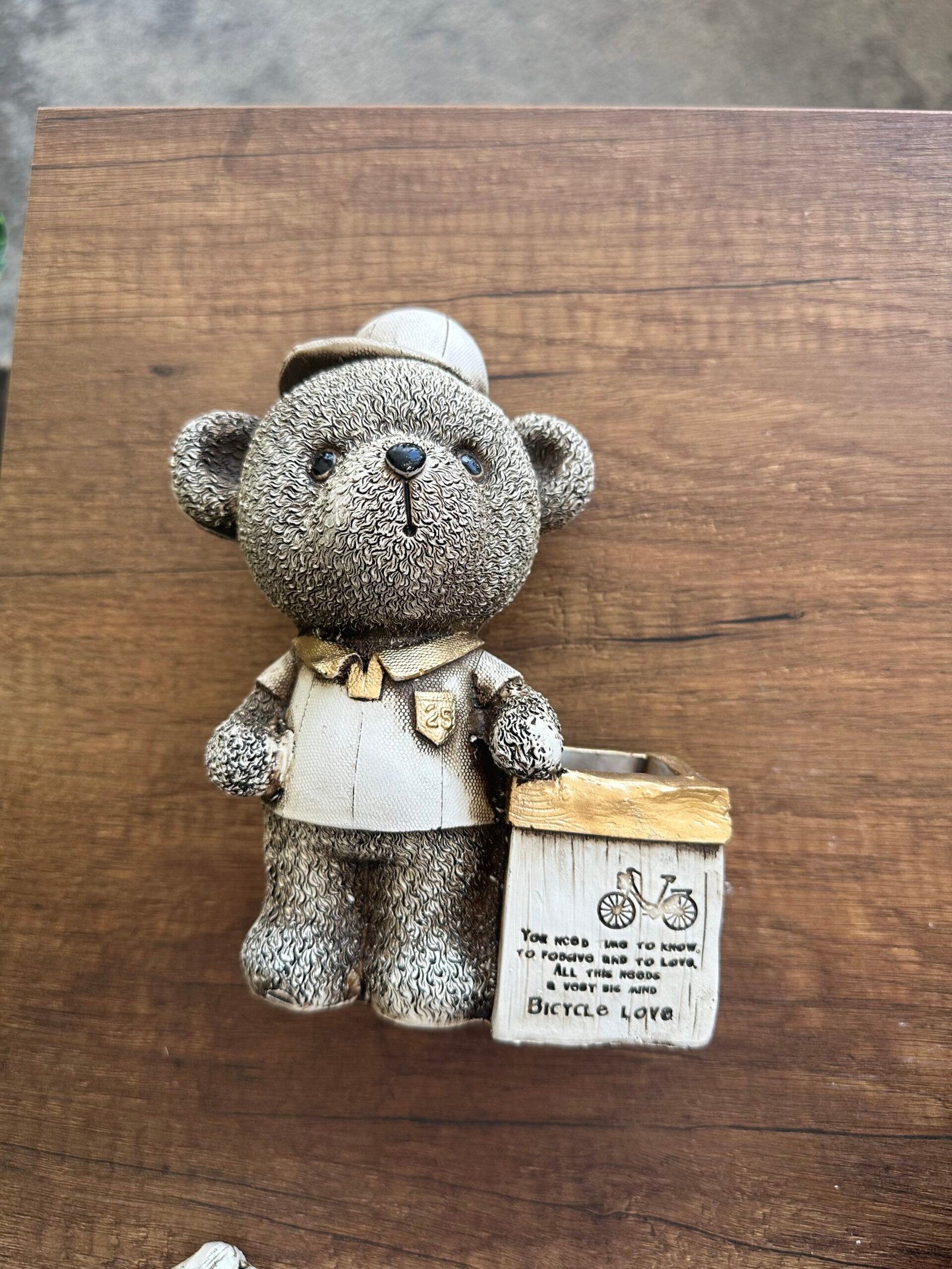 Kalemliğin ayıcık modeli, yuvarlak hatları ve detaylı işçiliğiyle dikkat çeker. Sevimli ayıcık figürü, özenle tasarlanmış ve boyanmış olup, her bir detayıyla özgün bir karakter sunar. Bu tasarım, çocukların ve yetişkinlerin gönlünü kazanacak şekilde, eğlenceli ve estetik bir görünüm sunar.