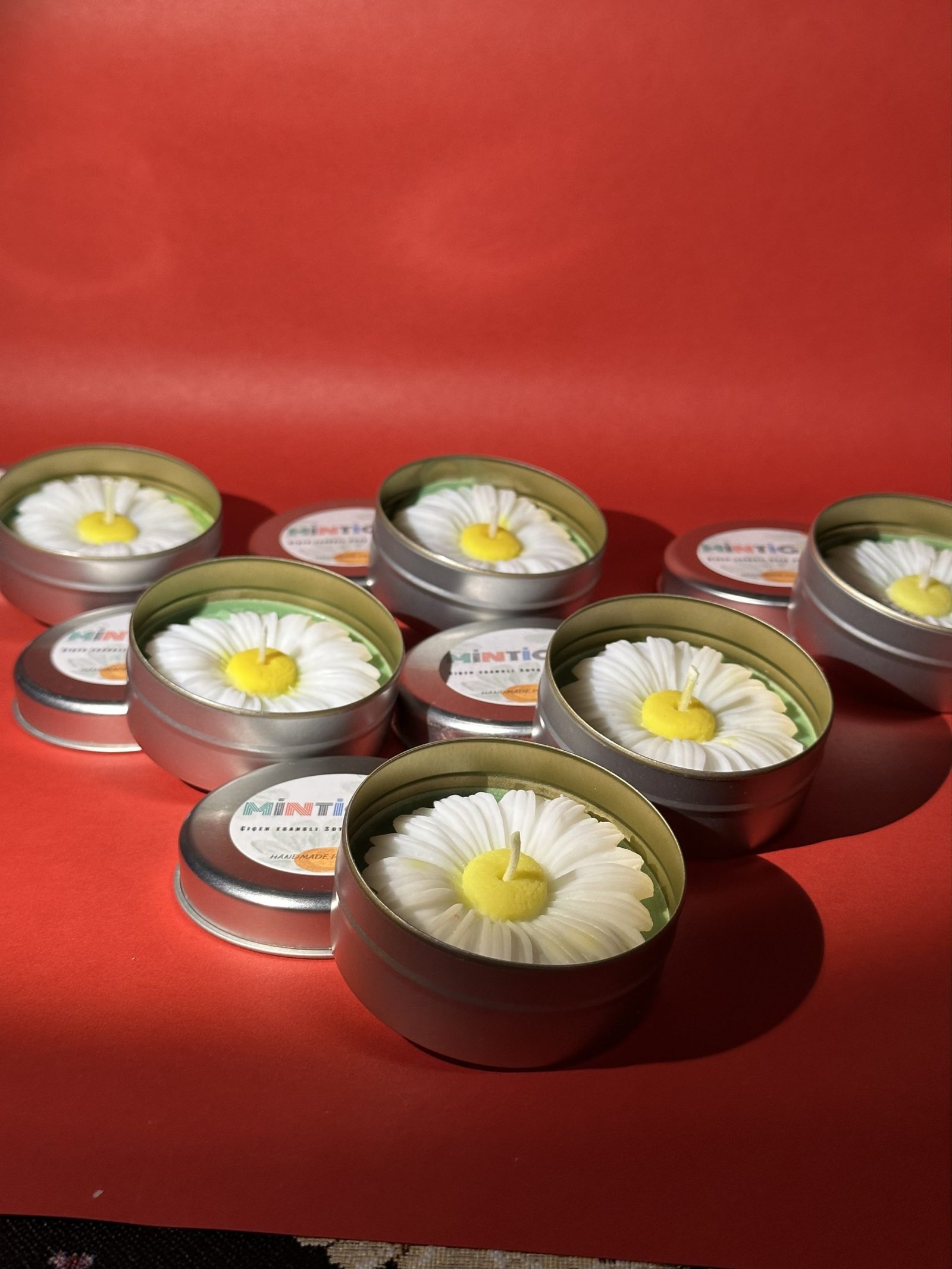 Kutuların içinde soyadan üretilen papatya vardır. Ürünlerimiz Vegan ve kimyasal içermeyen ürünlerden üretilmiştir. İdeal kullanım için mumu her yaktığınızda en az 2 saat bekleyerek erime havuzunun kavanozun çoğuna yayıldığından emin olun.