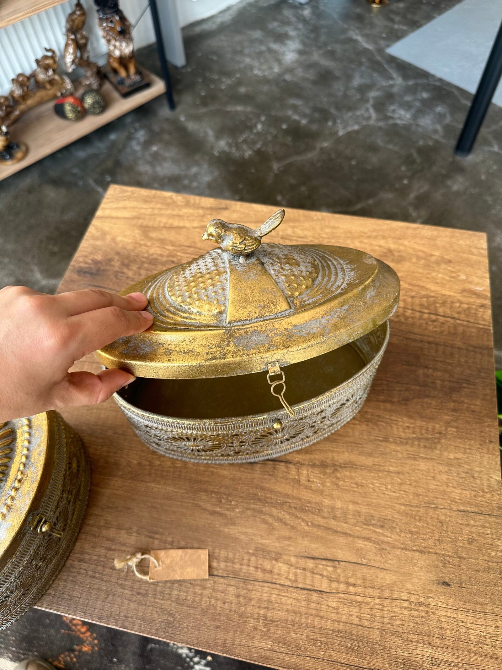 Sonuç olarak, Perforje Paşabahçe Kapaklı Kuşlu kutu, işlevselliği ve estetiği mükemmel bir şekilde bir araya getiren harika bir üründür. Dayanıklı yapısı ve göz alıcı tasarımıyla, evinizde veya of Boyutları: 17×26+-2 cm en x boy, 21+-2cm yüksekliktedir. isinizde kullanabileceğiniz pratik ve şık bir parçadır. Günlük yaşamınıza zarafet katmak için ideal olan bu tepsiyi hemen edinin ve yaşam alanınızı benzersiz bir şekilde tamamlayın. Objemiz Perforje işlemeli dayanıklı malzemeden üretilmiş. Ürün klasik ve şık dekoratif özelliğinden dolayı evinizde, banyonuzda veya ofisinize şıklık katacaktır. Ürün özellikleri Malzeme: Perforje Boyutları: 17×26+-2 cm en x boy, 21+-2cm yüksekliktedir. Paket içeriği 1 adet ürün gönderilir. Mintigur ürünleri sizler ile..