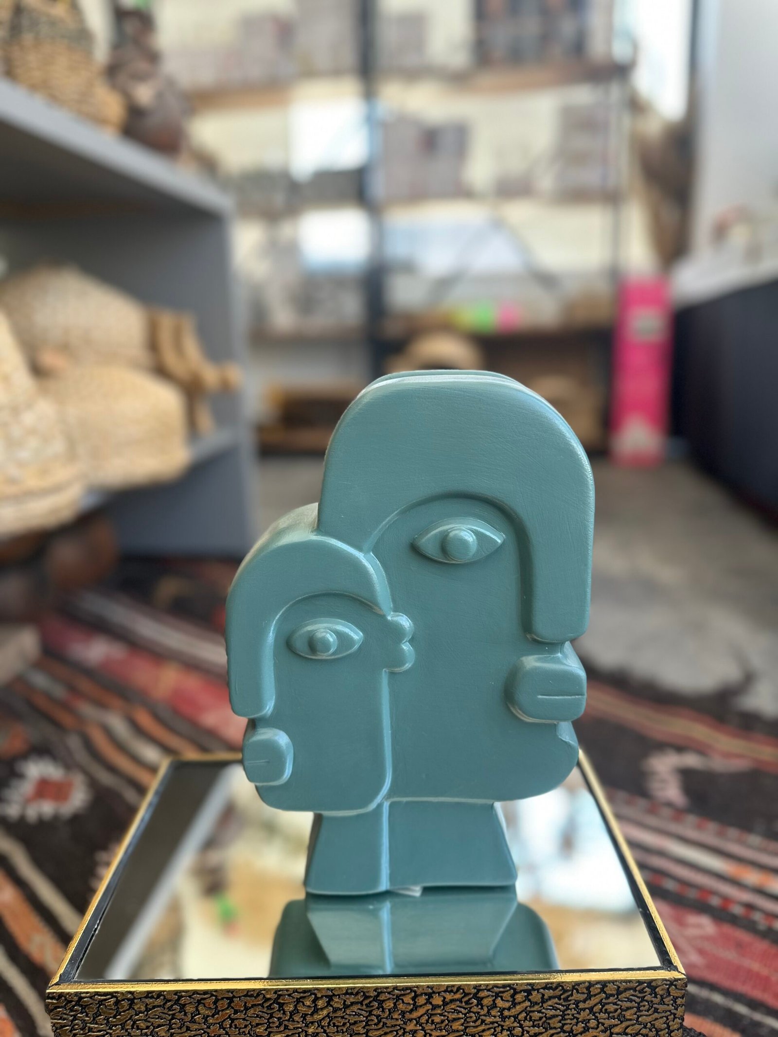 Bu obje, soyut sanatın özgünlüğünü ve yaratıcılığını en iyi şekilde yansıtır. İki yüzün bir araya getirilmiş ve geometrik formalarla yeniden düzenlenmiş hali, izleyicilere duygusal ve estetik bir deneyim sunar. Yüzlerin hatları, keskin ve belirgin olup, modern sanatın minimalist estetiğiyle harmanlanmıştır. Objeyi çevreleyen alanla mükemmel bir uyum içinde olan renkler ve dokular, modern iç mekanlarda dikkat çekici bir vurgu noktası oluşturur.